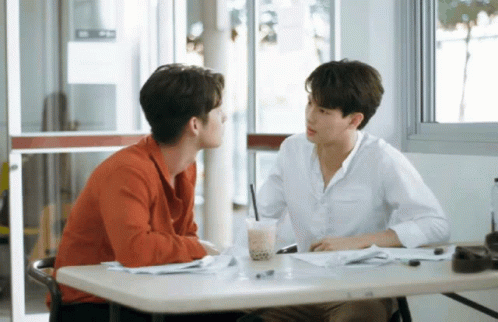 Sarawat (Bright) gently touches Tine's (Win Metawin) neck in a tender moment from 2gether The Series.