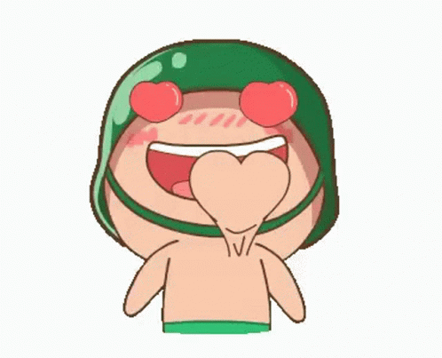 A cute cartoon soldier with heart eyes and a green helmet, blushing and drooling a heart.