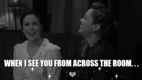 Erin Krakow and Kevin McGarry share a loving glance across the room in this heartwarming Hearties moment.