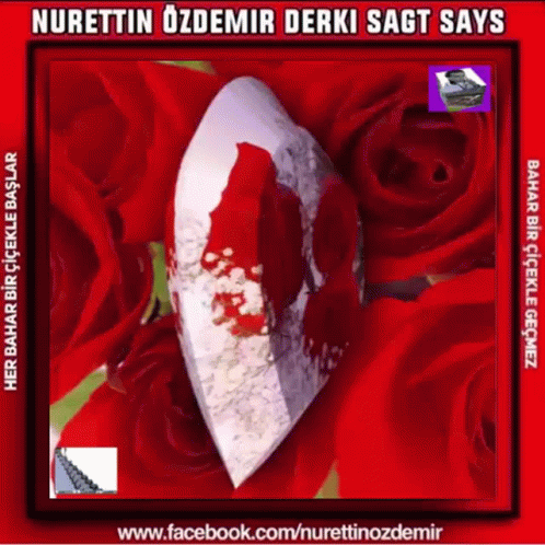 A heart-shaped frame displaying changing images of red roses and a crystal, set against a background of red roses.