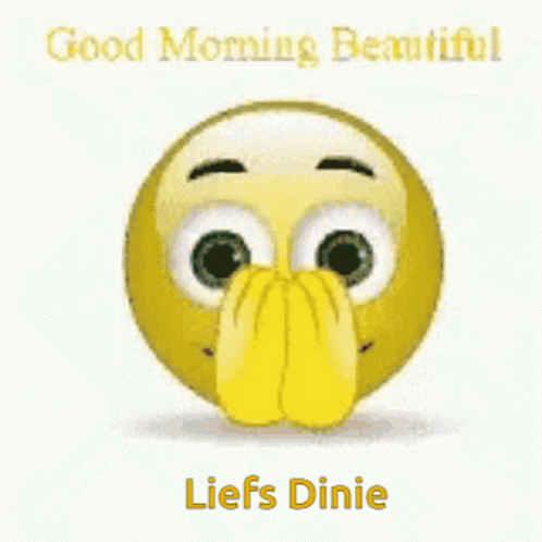 A cheerful emoji sends a good morning message with a heart kiss, signed 'Love, Dinie'.