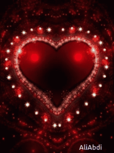 A glowing red heart surrounded by lights, featuring the name Aliabdi.