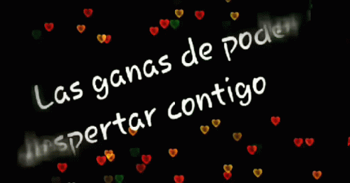Animated hearts float around the Spanish text 'Las ganas de poder despertar contigo' on a black background.