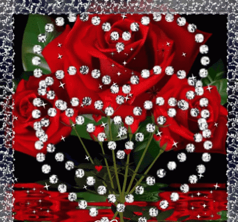 A beautiful animation featuring vibrant red roses and sparkling diamonds arranged in a heart shape.