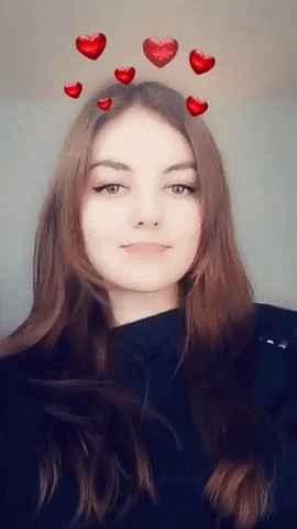Veronica with animated red hearts around her head, playfully rolling her eyes and shaking her head.