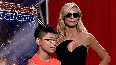 Heidi Klum and a boy pose at America's Talent, part of an April Fool's wax figure prank.