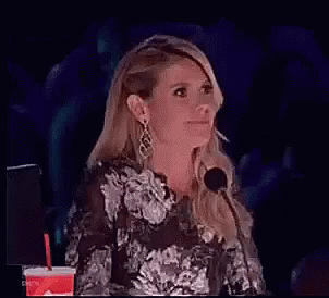 Heidi Klum gives two enthusiastic thumbs up while sitting at a microphone.