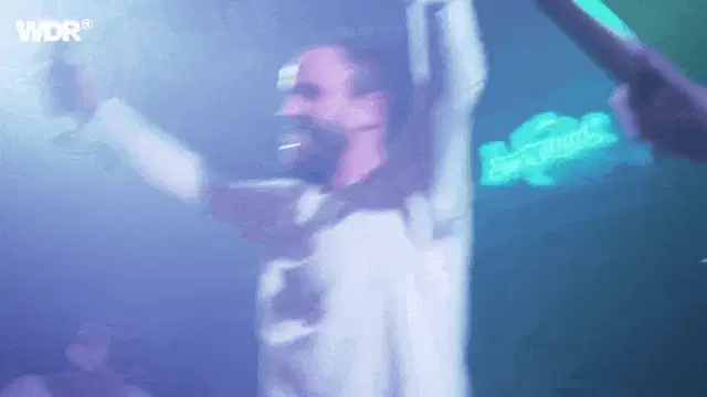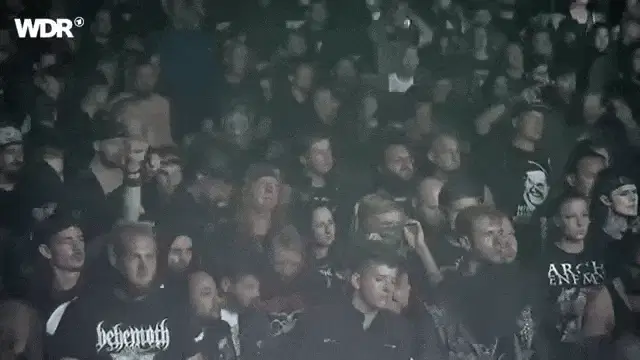 Helene Fischer and a group of drummers perform a powerful 'Trommelwirbel' (drum roll) on stage with smoke effects.