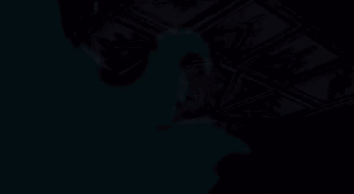 a cartoon character with glowing green eyes looks at the camera