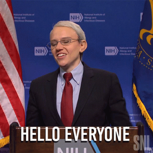 Kate McKinnon impersonates Anthony Fauci, greeting everyone from behind a podium with an American flag.