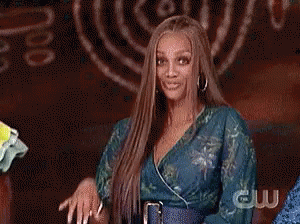 A woman in a teal top makes a funny, exaggerated face and waves, delivering an energetic greeting.