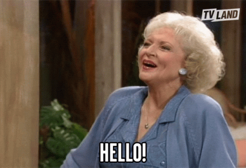 Betty White, known for The Golden Girls, smiles warmly and greets the audience with a cheerful 'Hello!'