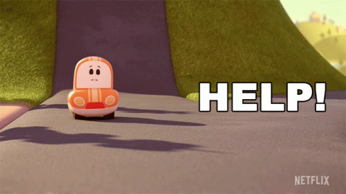 Animated character Cory Carson from Go Go Cory Carson series in an emergency, calling for help.
