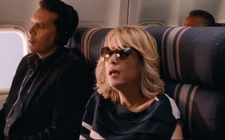 Kristen Wiig as Annie in Bridesmaids, sitting on a plane and delivering the iconic 'Help Me, I'm Poor' line.
