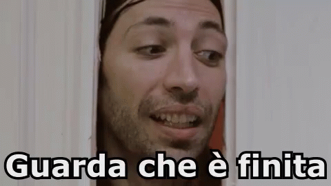 Herbert Ballerina (Luigi Luciano) from Quel Bravo Ragazzo looks out a doorway, announcing the toilet paper is finished.