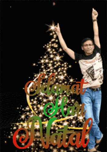 Herke Monse, possibly with Anggi, wishes 'Selamat Hari Natal' (Merry Christmas) in front of a festive Christmas tree.