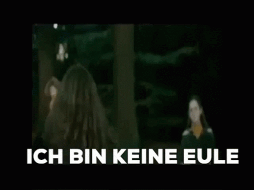 Hermine from Harry Potter emphatically states 'I am not an owl' while standing in a forest with others.