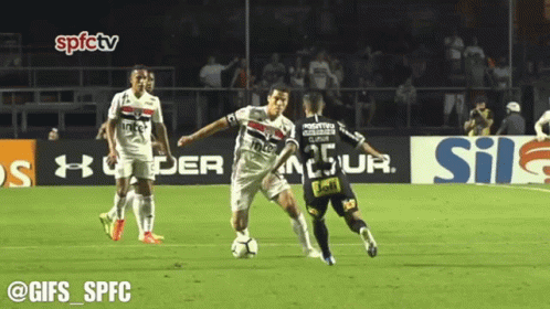 Hernanes Profeta mostra habilidade driblando Clayson durante partida do São Paulo FC.