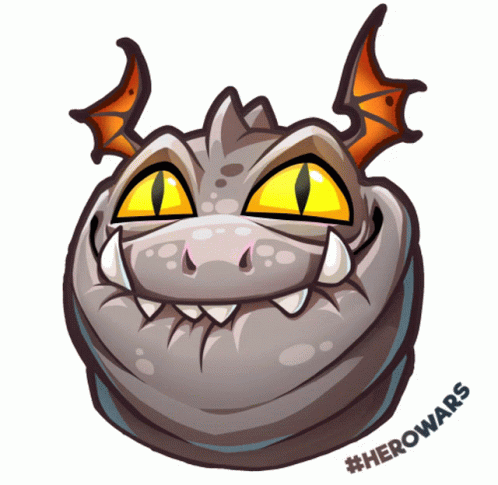 A cute, mischievous cartoon dragon from Hero Wars smiles with tiny wings and sharp teeth.