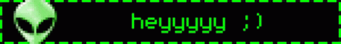 Green pixel alien head blinks on a black background, animatedly saying 'Hey Heyy'.
