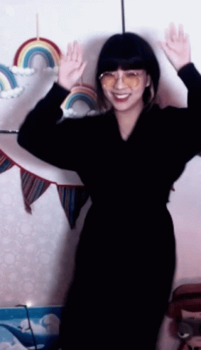 Korean streamer Luna, also known as Heybbibbi Bbibbi, performs fun dance moves in sunglasses.