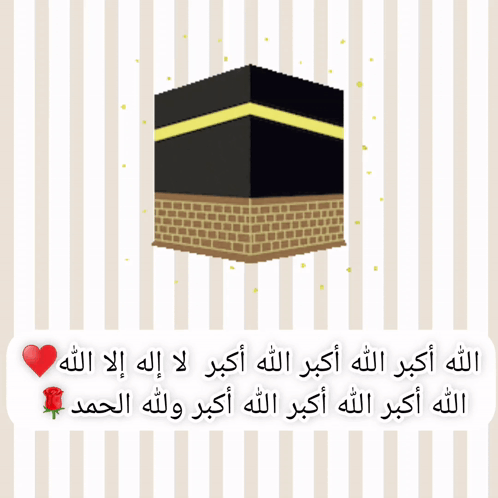 Illustration of the Kaaba with Arabic Takbirat for Hajj and Dhul Hijjah, accompanied by a heart and rose.