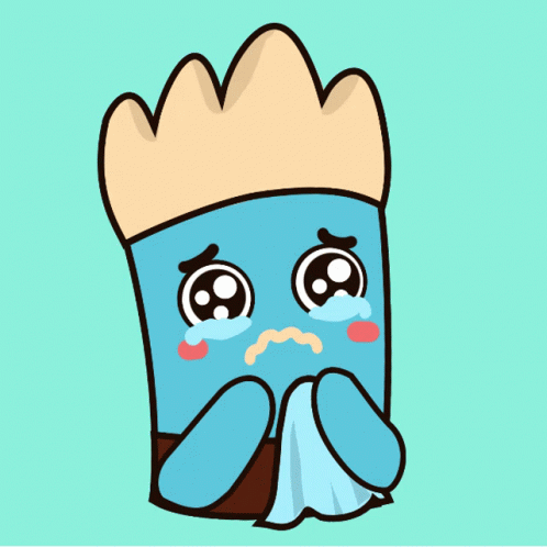 Animated character Hi Pencil with a crown cries, holding a tissue to its face, with a tear droplet visible.