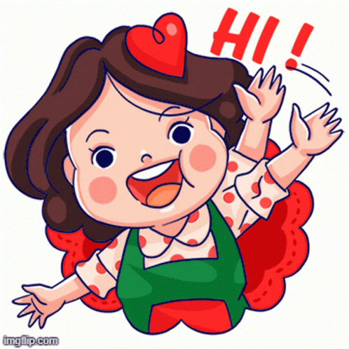Cartoon girl, Hi Xinchao, waves cheerfully with a heart on her head and 'HI!' text.
