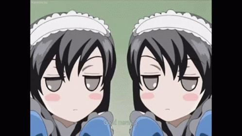 Hikaru and Kaoru Hitachiin from Ouran High School Host Club greet someone with 'Good morning'.