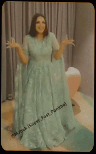Indian model Himanshi Khurana gracefully dancing in a beautiful light green gown, showcasing elegant moves.