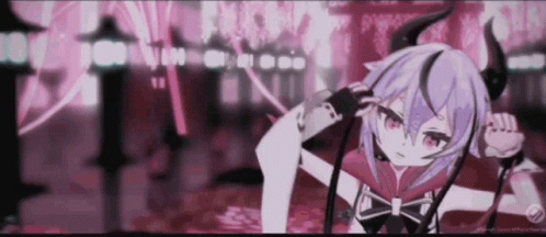 MEIKA Hime Mikoto, a purple-haired anime girl with horns, dances in a dark, neon-lit room.