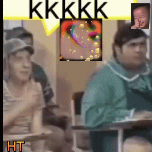 A classroom scene with people laughing, featuring elements from the show Chaves and the text 'kkkkk'.