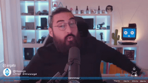 a man with a beard and glasses is talking into a microphone while sitting in front of a cactus