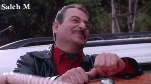 Saleh M laughing heartily while speaking, with an Arabic caption translating to 'By God, I will make your barking reach Cyprus'.