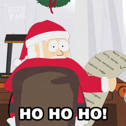 South Park's Santa Claus reads his list, wishing everyone 'Ho Ho Ho' and 'Merry Christmas!'