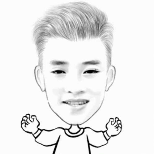 Hoang Dinh cartoon character with a dramatic nosebleed, eyes wide open in shock.