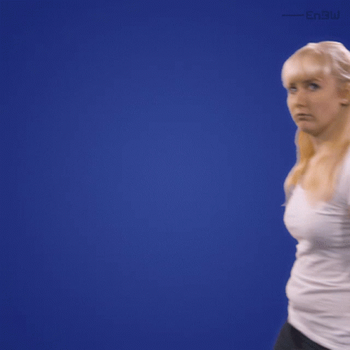 A woman holds up an Enbw card promoting 'E-charging instead of blocking' and shakes her head in disapproval.