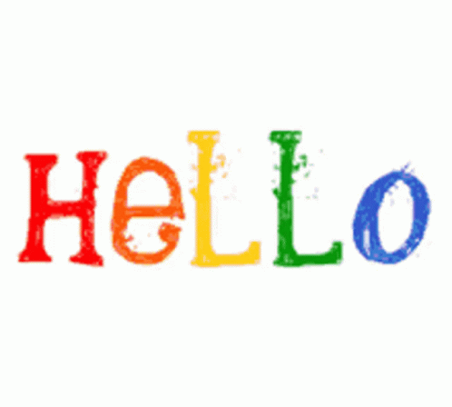 The word 'Hello' displayed in vibrant, multi-colored letters with a textured appearance.