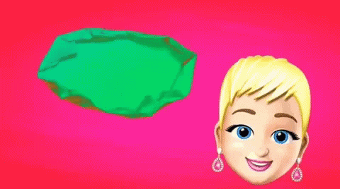 Katy Perry's animated emoji introduces herself with 'Hola Me Llamo Katy' in a vibrant speech bubble on a pink background.