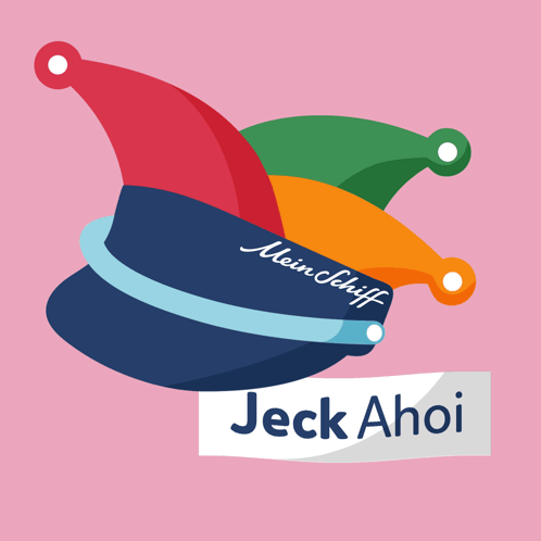 Animated graphic for Mein Schiff's Jeckliner Carnival cruise, featuring colorful jester hats.