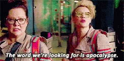 Kate McKinnon's Holtzman and Melissa McCarthy discuss the impending apocalypse with concern.