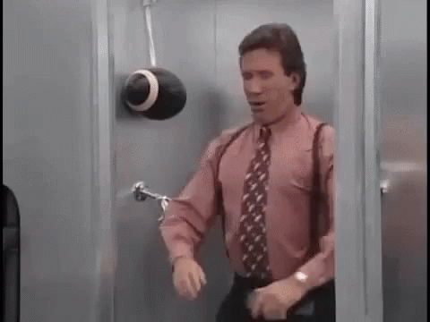 Tim Allen on the 'Home Improvement' set, demonstrating a unique 'Man's Bathroom' concept with various features.