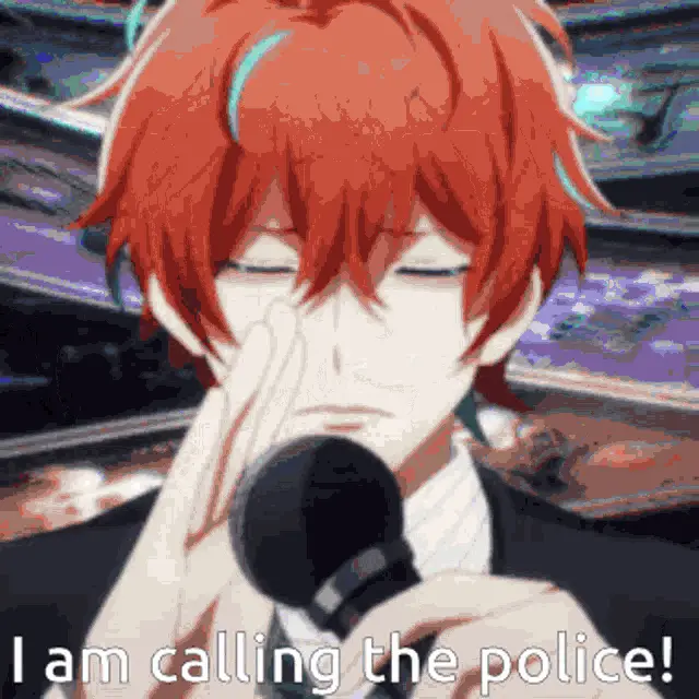 Doppo Kannonzaka and Hifumi Izanami from Hypnosis Mic share a hug, while a third character sighs in the background.