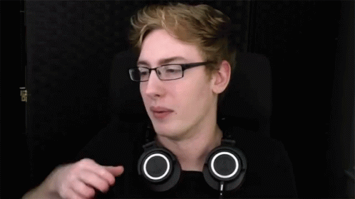 Hoodie Panda says 'Shoo' while wearing glasses and headphones, sitting in a chair.