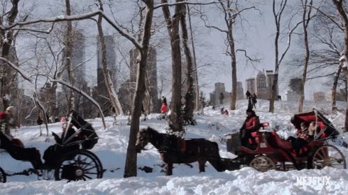 A horse-drawn carriage moves through a snowy park, featuring the title card for the Netflix movie 'A Christmas Prince'.
