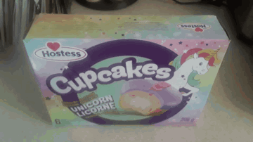 A colorful box of Hostess Unicorn Cupcakes, featuring a unicorn illustration and 'Special Edition' branding.