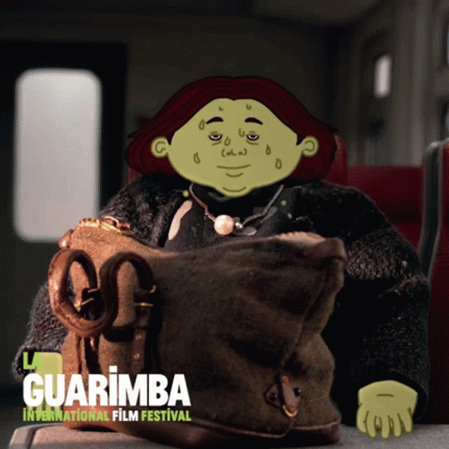 A cartoon character sweats and wipes its forehead, promoting La Guarimba International Film Festival.