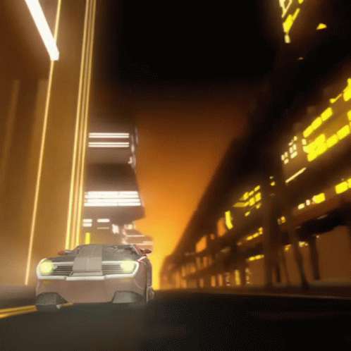Nolo Passaro and Tork Maddock race their Hot Wheels Acceleracers cars, Hollowback and Synkro, through a futuristic city.
