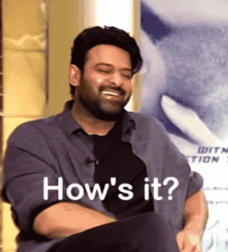 Prabhas laughs heartily while asking 'How's it?' in a lighthearted moment during an interview.