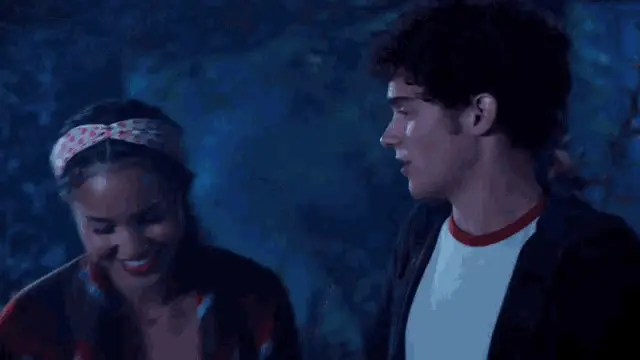 Nini (Olivia Rodrigo) from High School Musical: The Musical: The Series smiles, wearing a plaid jacket and red shirt.